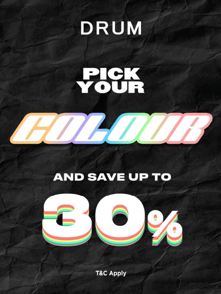 Pick Your Colour, big savings up to 30% OFF!💥 Pick a colourful ball and instantly reveal your mystery discount from 10% to 30% OFF on the spot. Want even more? Spend RM200 and get to pick twice — enjoy the highest discount for maximum savings! Promo runs until 26/10. Don’t miss your chance for surprise savings, available at DRUM Suria Sabah (Lot 1-53, 1-54& 1-45C, First Floor)!