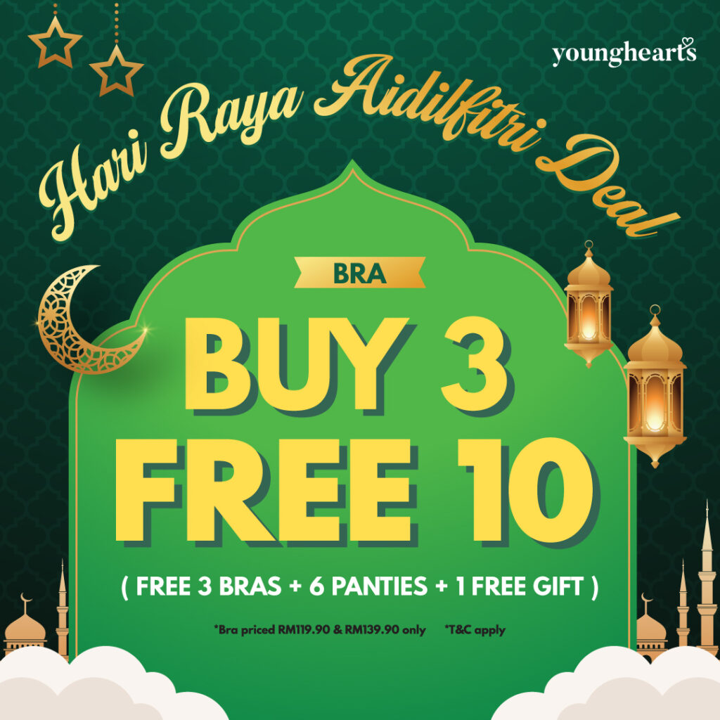 Young Hearts Raya Special Deal! Buy 3 bras and get 10 items free! It's time to stock up your new essentials now. Available from 27th Feb - 20th March 2026. T&C Apply. While stocks last. ๐1-62, 1-63, 3-24 & 3-26, 1st & 3rd Floor, Young Hearts & Young Curves Suria Sabah Shopping Mall #YoungHeartsMY #YoungCurvesMY #youngheartssuriasabah #youngcurvessuriasabah #rayadeals #raya2026 #suriasabah #suriasabahkk #suriasabahkotakinabalu #suriasabahshoppingmall