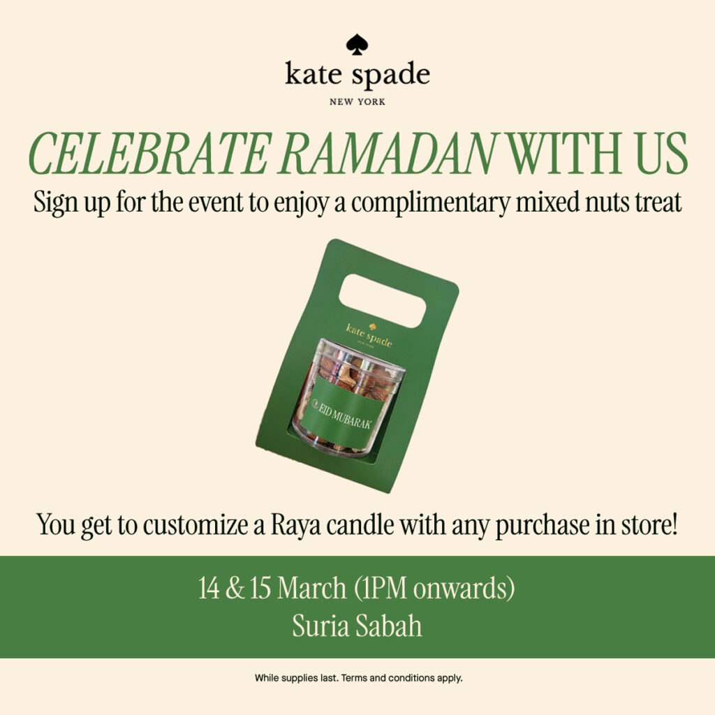 Celebrate Ramadan with Kate Spade with complimentary mix nuts for you from 14-15 March 2026. Sign up here: https://suria-sabah-ramadan-celebration.eventbrite.com #ramadan #katespade #suriasabahshoppingmall